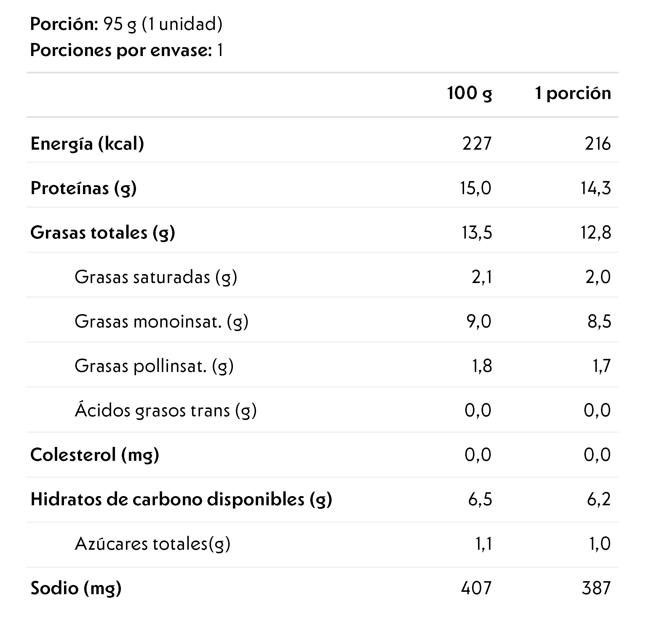 Agua, proteína de arveja, aceite vegetal (soya y maravilla), saborizantes naturales, gluten de trigo, metilcelulosa, proteína de soya, fibra de bambú, manteca de coco, fibra de trigo, cacao en polvo, sal, rojo de remolacha y espinaca en polvo.