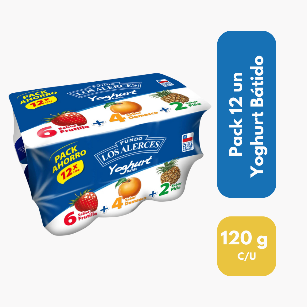 Pack 12 Yoghurt Los Alerces 3 Sabores 120 g